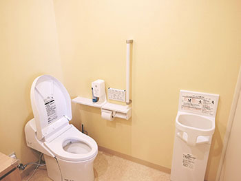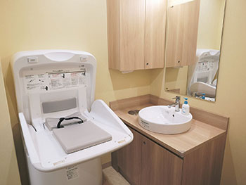 お手洗いにはベビーキープとおむつ交換台を備えていますので、お子様連れでも安心してご来院頂けます。お子様が思いがけずおむつを汚してしまった場合も、おむつとおしりふきのセットをご用意しておりますので、お困りの際は、スタッフまでどうぞお気軽にお声掛けください!