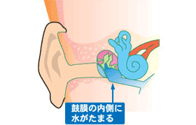 鼓膜の内側の中耳と呼ばれる部分に滲出液という液体がたまってしまっている状態です。