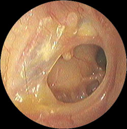 耳だれが断続的にみられますので、鼓膜に生じた穴はいつまでもふさがりません。