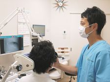 具体的には赤外線眼鏡で眼球の動きを調べます。当院ではCCDカメラ付きの検査機器を導入しておりますので、大画面モニターに眼球の動きを拡大して映し出し、詳細に観察することが可能です。